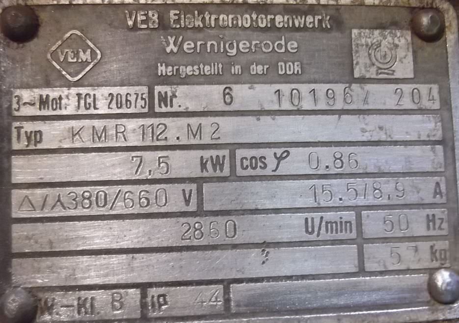 Maschinentyp: Elektromotor 7,5 kW 2860 U/min