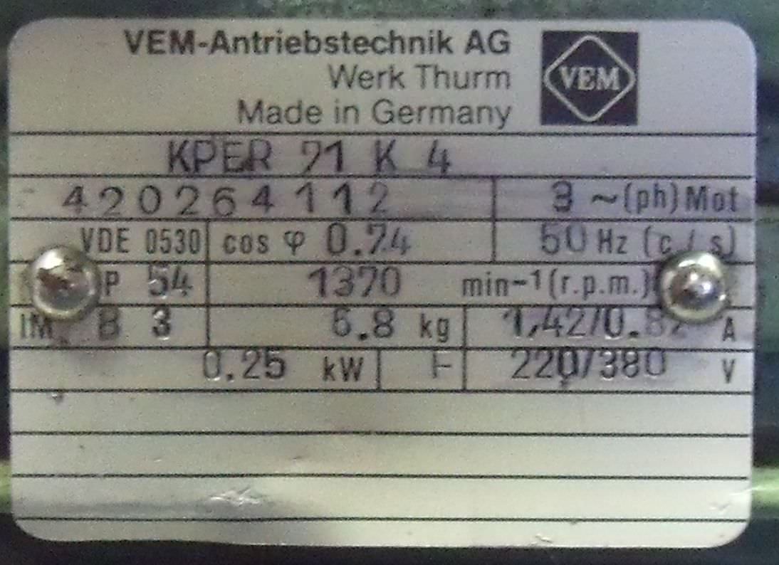 Maschinentyp: Elektromotor 0,25 kW 1370 U/min