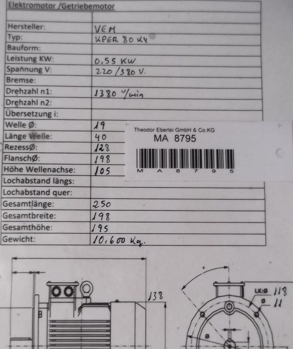 Maschinentyp: Elektromotor 0,55 kW 1380 U/min
