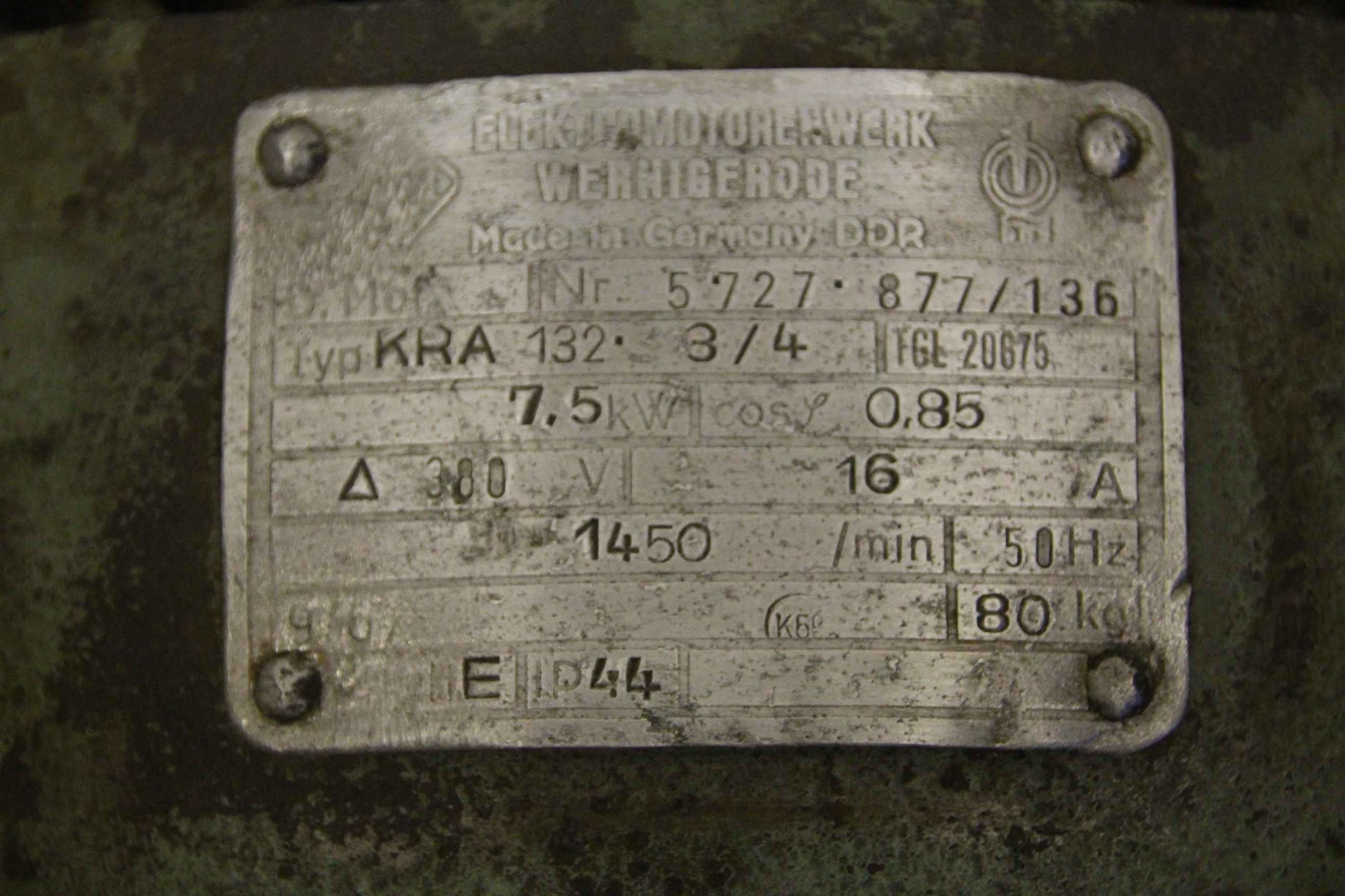 Maschinentyp: Elektromotor 7,5 kW 1450 U/min
