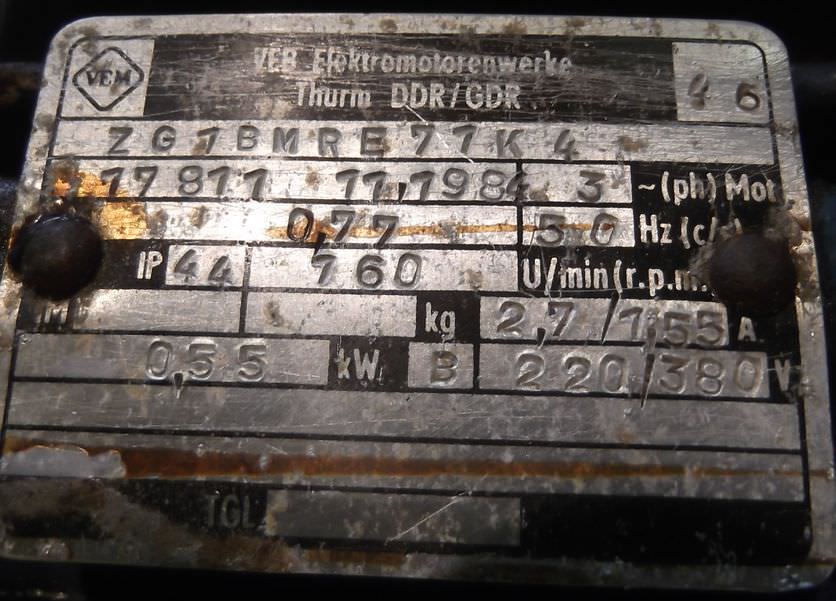 Maschinentyp: Getriebemotor 0,55 kW 160 U/min