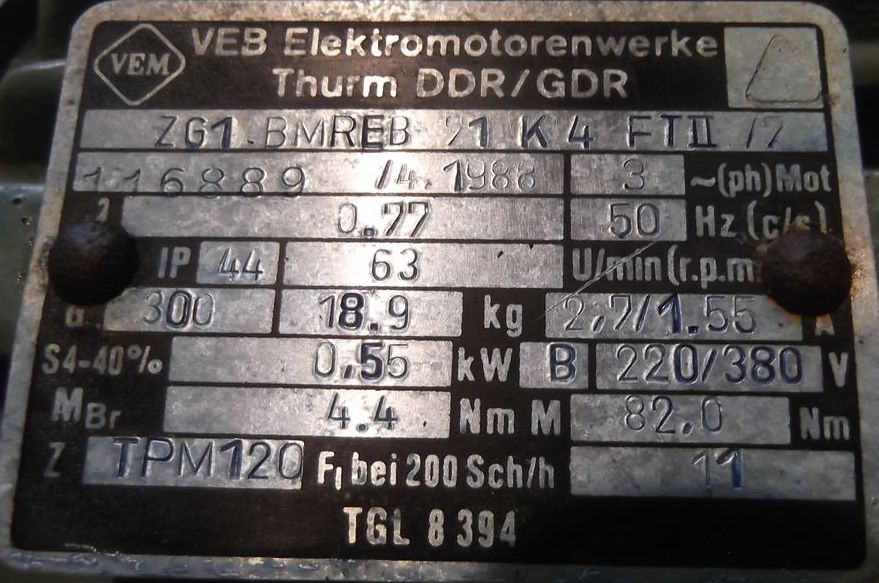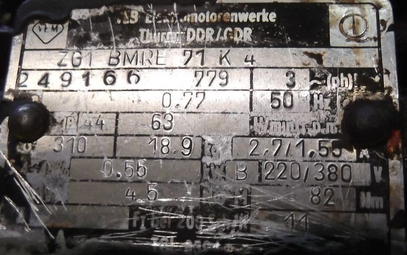 Maschinentyp: Getriebemotor 0,55 kW 63 U/min