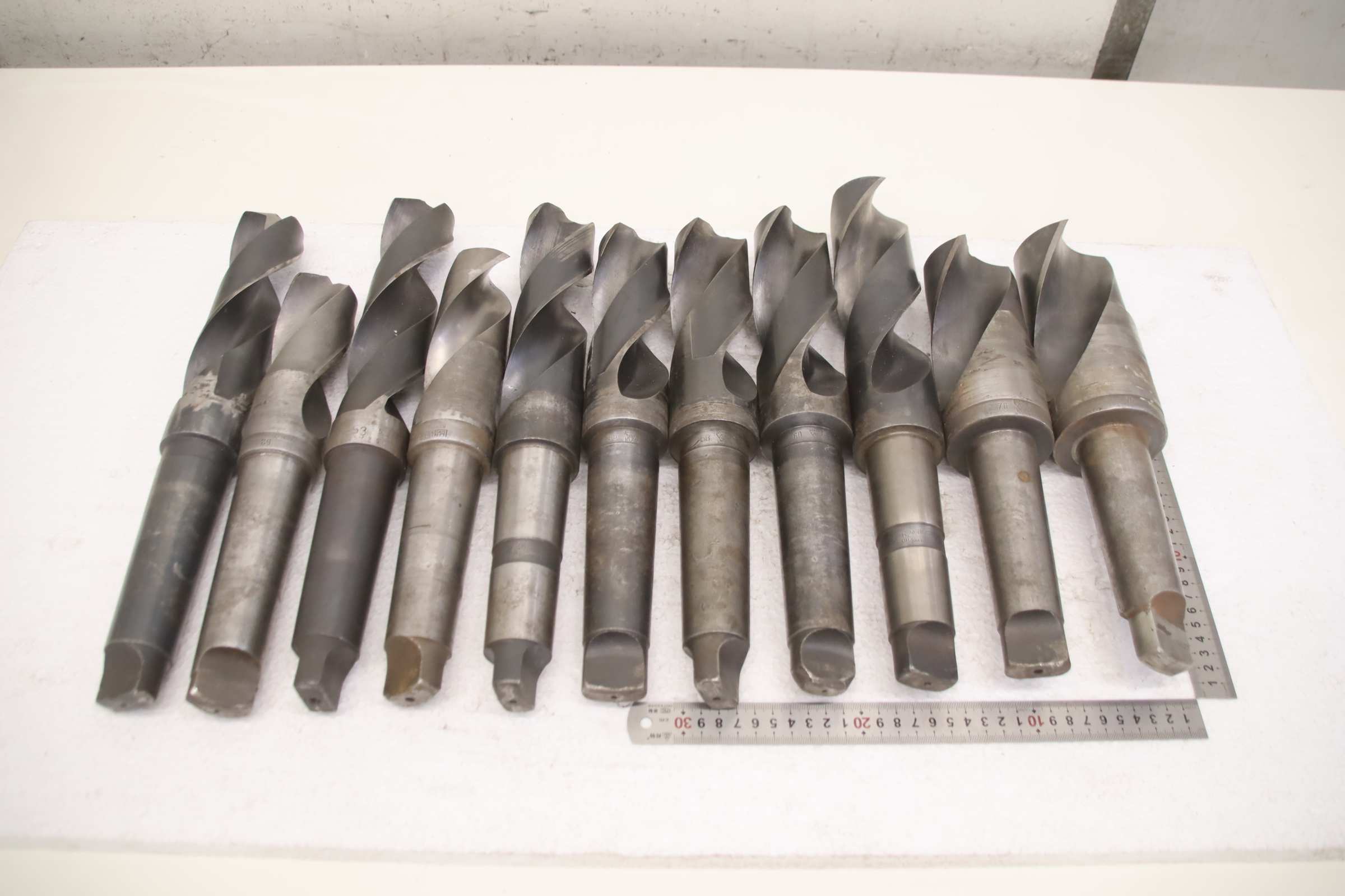 Gebrauchte Verschiedene Zweischneidig Ø 51 - 70 mm. Aufbohrer, Spiralbohrer, Bohrer -Hersteller: Maysso / Unisto/ Hartner / Stock, Spiralbohrer 6 Stück Ø 51 - 70 mm -Typ: Zweischneider, Aufnahmen MK5 mit flacher Bohrspitze -Größe/Stückzahl: siehe Foto Stückliste -Preis/Abgabe: komplett -auf Anfrage: verschiedene Größen/Stückzahlen aus weiterem Lagerbestand lieferbar -Transportabmessung: 345/270/H100 mm -Gewicht: 23,7 kg