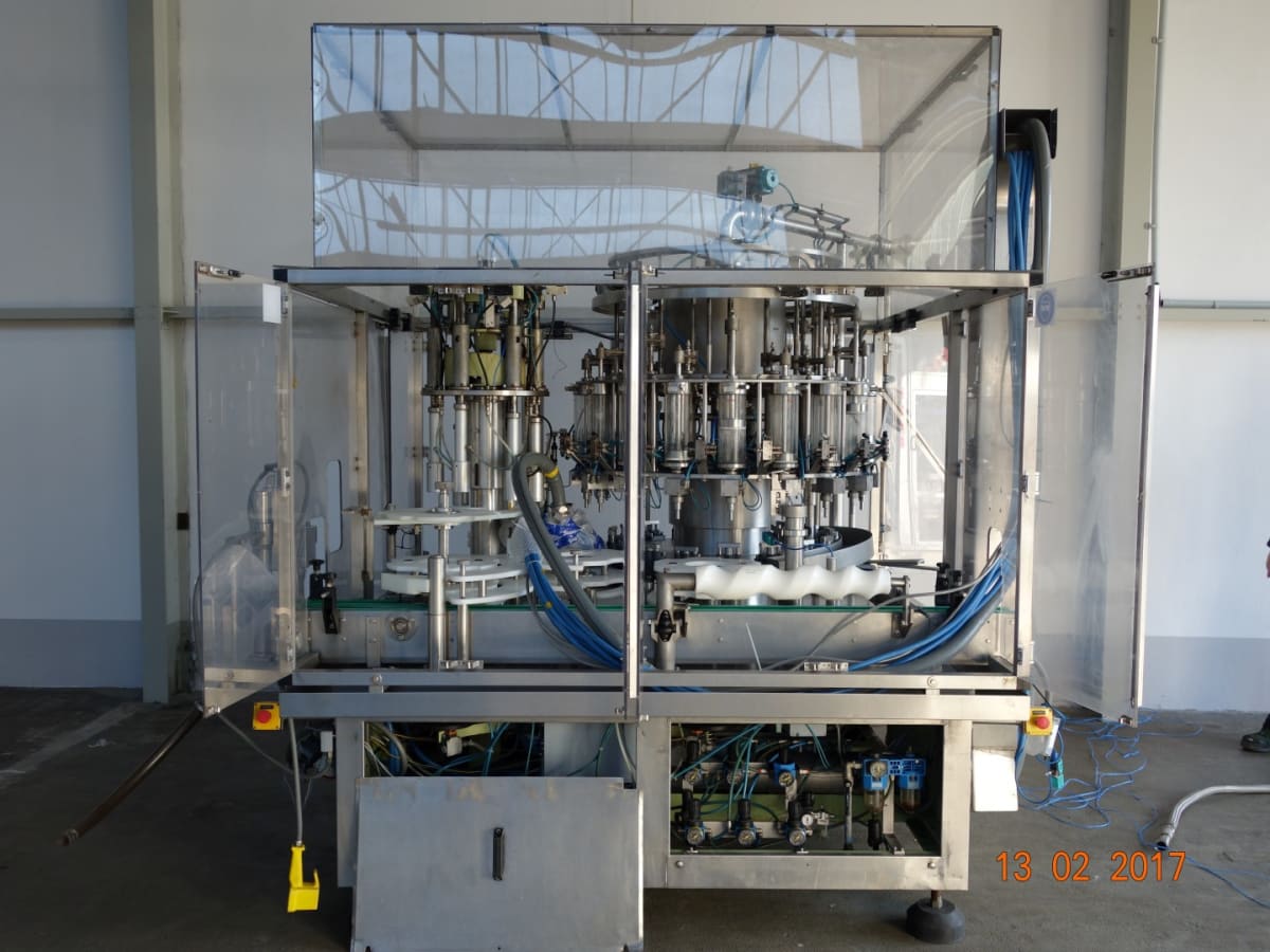 Monoblock Kolbenfüller mit 18 Ventile und einem 6er Verschliesser Füllstellen: 18 Leistung pro Stunde: 9000 Anzahl Verschlußköpfe: 6 Laufrichtung: rechts-links (gegen UZS)  Über 300 weitere Maschinen für die Getränke und Verpackungsindustie auf seema .de