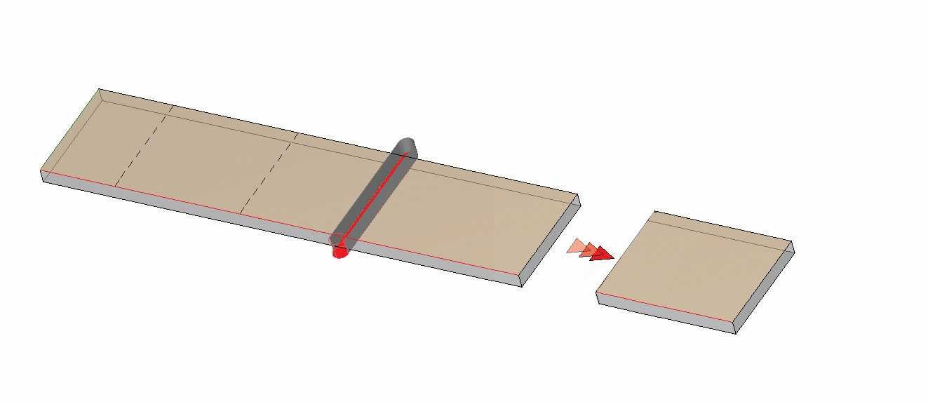 - Sie führen das lange Werkstück ein und wenn Sie das erste fertige