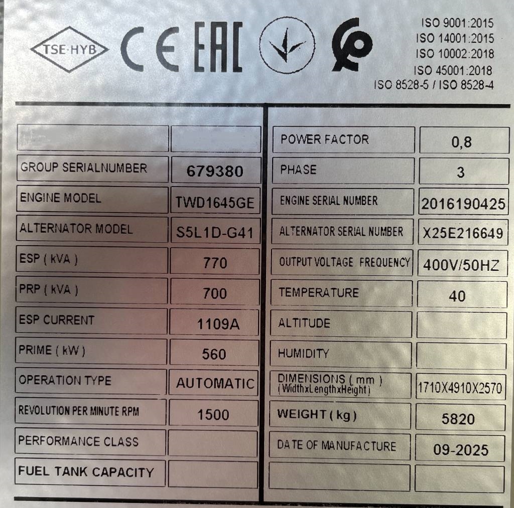 Modell: TWD1645GE - 770 kVA Generator - DPX-18885