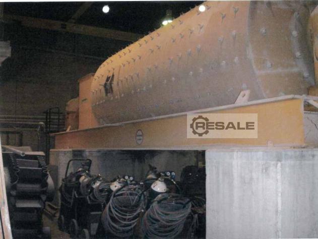 Nass-Kugelmühle, Überlaufkugelmühle, Trommeldurchmesser 2600 mm, Mahlbahnlänge 5500 mm, Mahlgut: Kalkstein 0-10 (16 mm), Nassmahlverfahren, 2-stufiger Zyklonkreislauf, nominelle Mahlleistung: 12-22 t/h, Füllungsgewicht max./normal: 44/39 t, installierte Motorleistung: 450 KW, Panzerung Gummi-Skega