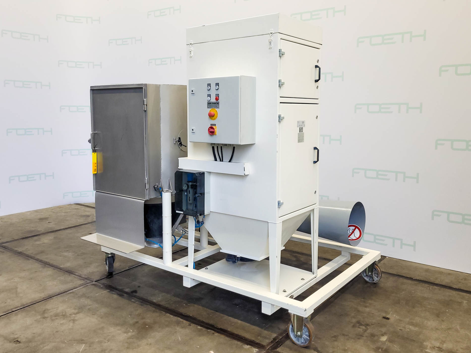 Sturzkabinett ist auch mit einem Absaugsystem mit Taschenfilter