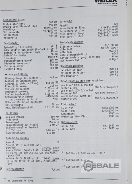 | 2013 | WEILER | COMMODOR Centre Lathe 550 | 18900 EUR | [Feb 2022] |