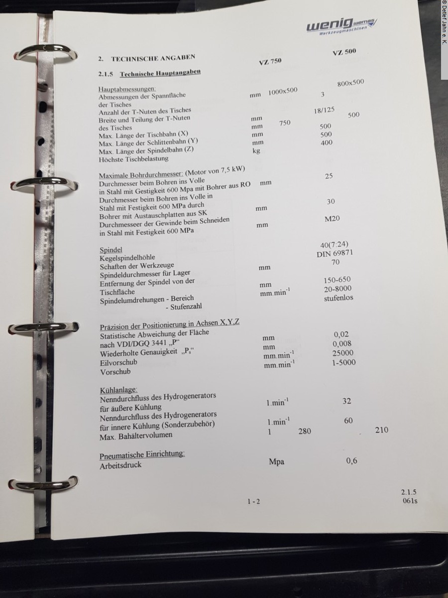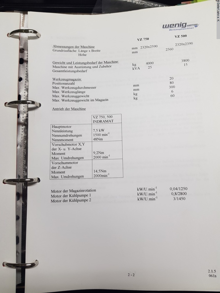 Bearbeitungszentrum WEMAS VZ 750, 3 Achsen, 4. Achse ist