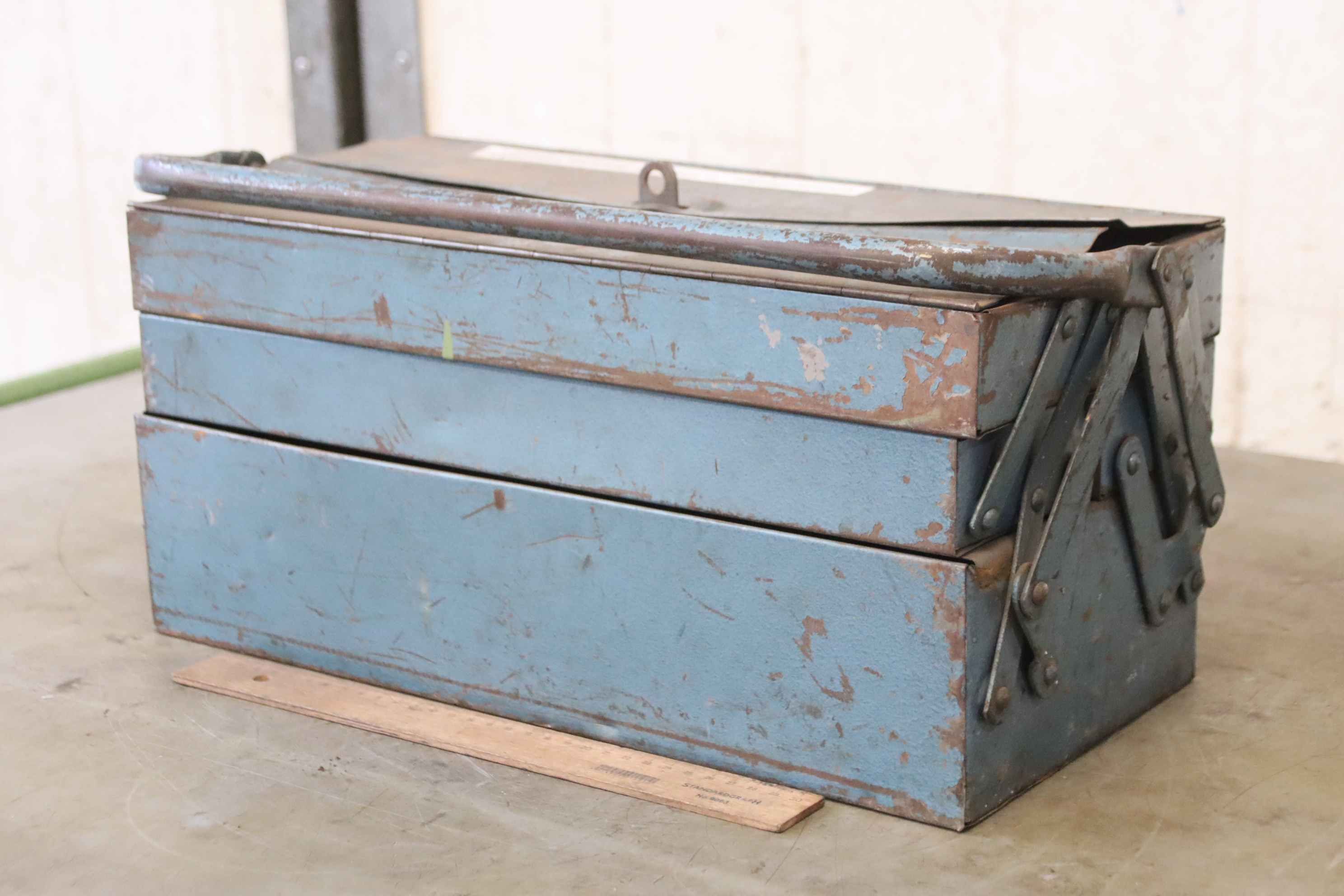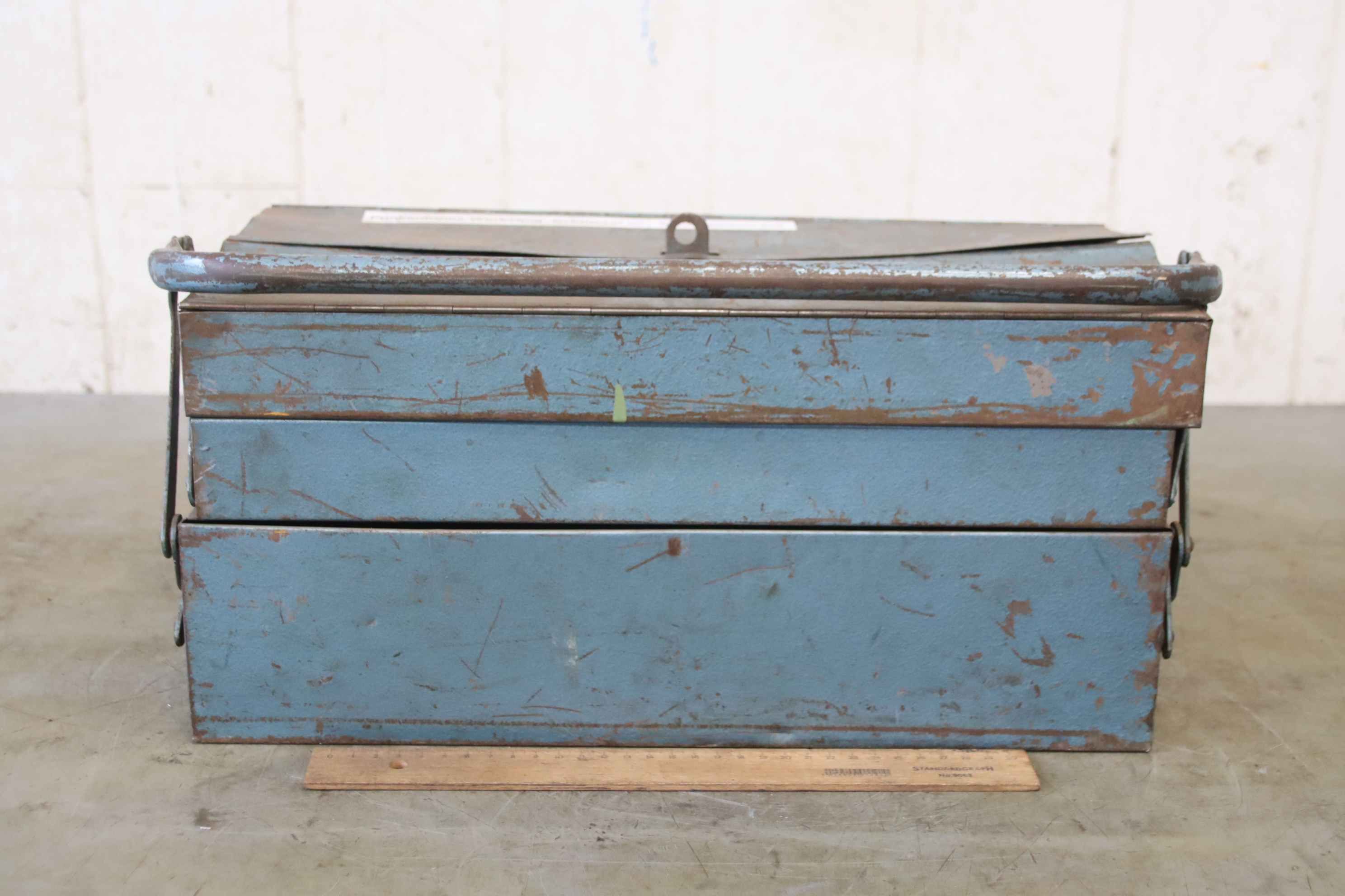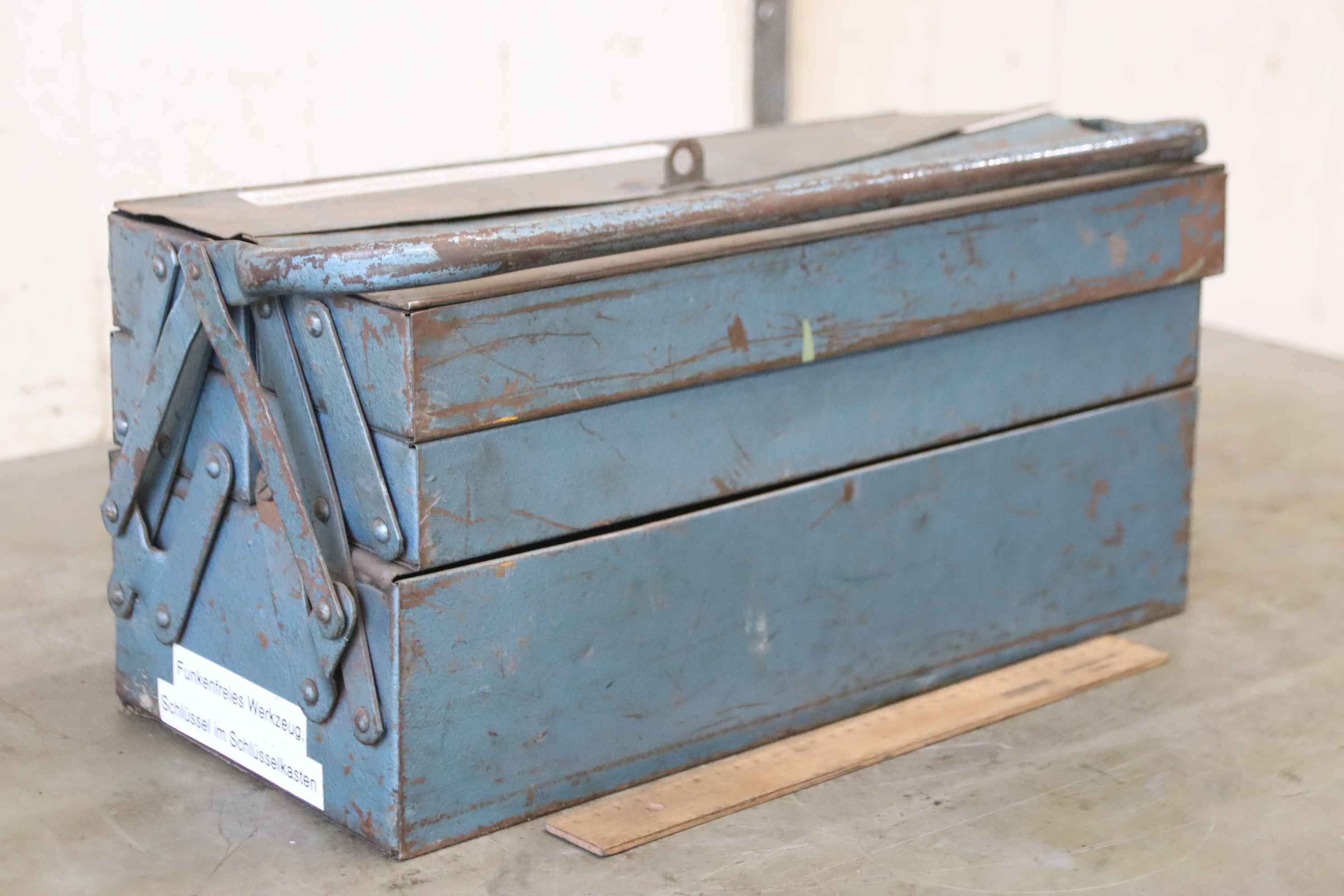 Schubladenschrank, Werkzeugschrank, Stahlschrank, Werkstattschrank, Werkzeugkiste -Werkzeugkiste: mit funkenfreies Werkzeug -Inhalt: siehe Fotos -Abmessungen: 430/200/H230 mm -Gewicht: 28 kg