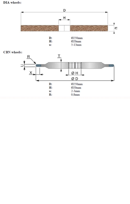 CBN-Schleifscheibenabmessungen: D: Ø 250 mm, d: Ø 20 mm