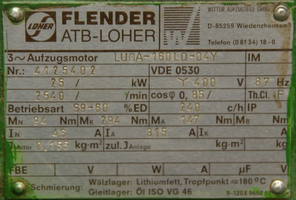 Maschinentyp: Aufzugmaschine 25 kW 59,4 U/min