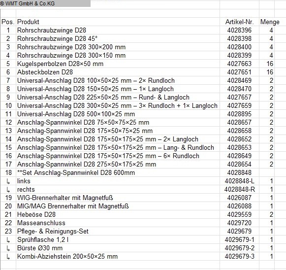 Maschinentyp: Schweißtisch-Zubehör