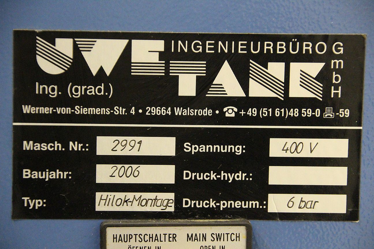 Drehmoment Montagestation, Drehmomentmodul, Montagevorrichtung, Drehmomentschrauber, Drehmomentschlüssel, Drehmomentschrauber, Nietpistole, Nietenpistole, Blindniet-Pistole, -Antrieb: Drehmomentmodul für Hilok-Montage -Drehmoment: einstellbar über Touch Screen -Anzahl Einpresszylinder :1 Stück -Anzahl Schraubgetriebe: 1 Stück -Arbeitsplattform: 800 x 500 mm -Verfahrwege: Y 400 mm, X 955 mm -Abmessungen: 1555/1470/H2110 mm -Gewicht: 794 kg