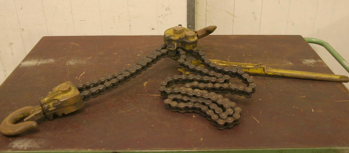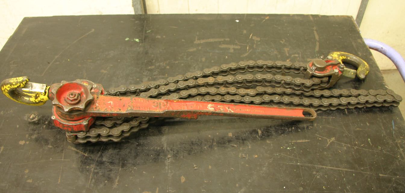 Hebelzug, Kettenzug, Kran, Montagezug, Montagekettenzug -Hersteller: Yale, Hebel-Kettenzug -Tragkraft: 3/4 Ton -Kettenlänge: 2,54 m -Anzahl: 1 Stück -Abmessungen: 600/130/H150 mm -Gewicht: 8,9 kg