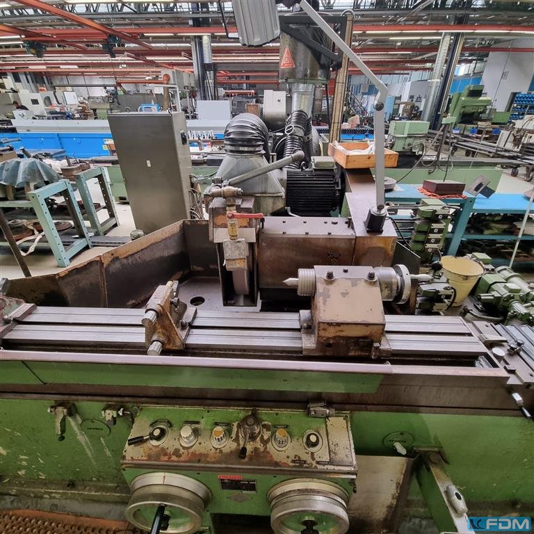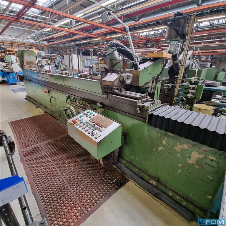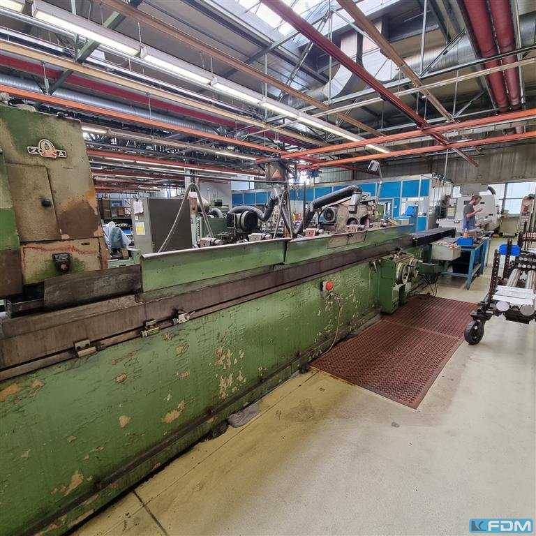Schleifdurchmesser: 850 mm Schleiflänge: 4000 mm Spitzenhöhe: 425 mm Steuerung: Siemens 8 Werkstückgewicht zwischen Spitzen max.: 3000 kg Werkstückgewicht in den Setzstöcken max.: 4000 kg Werkstückgewicht max. - fliegend: 300 kg Werkstückspindelstock schwenkbar: 0 - 90 °/deg. Werkstückspindeldrehzahl: 23 - 230 U/min Werkstückspindelstockmotor: 5,3 kW Schleifspindelstock schwenkbar: +30 / -10 °/deg. Schleifscheibenabmessung: 750 x 125 x 305 mm Tischvorschub: 0,01 - 4000 mm/min Tischeilgang: 10 m/min Tisch schwenkbar +/-: +3 / -3 °/deg. Schleifscheibengeschwindigkeit: 25 - 50 m/sec Schleifscheiben-Antrieb: 19 kW Abmessungen L x B x H: 14,0 x 3,13 x 2,6 m Gesamtleistungsbedarf: kW Maschinengewicht ca.: 19,4 t Raumbedarf ca.: m Universal Aussen-Rundschleifmaschine modernisiert in 2011 Steuerung Siemens 828D Innenschleifkopf, einschwenkbar Schleifscheibenauswuchtgerät MPM Gle ...